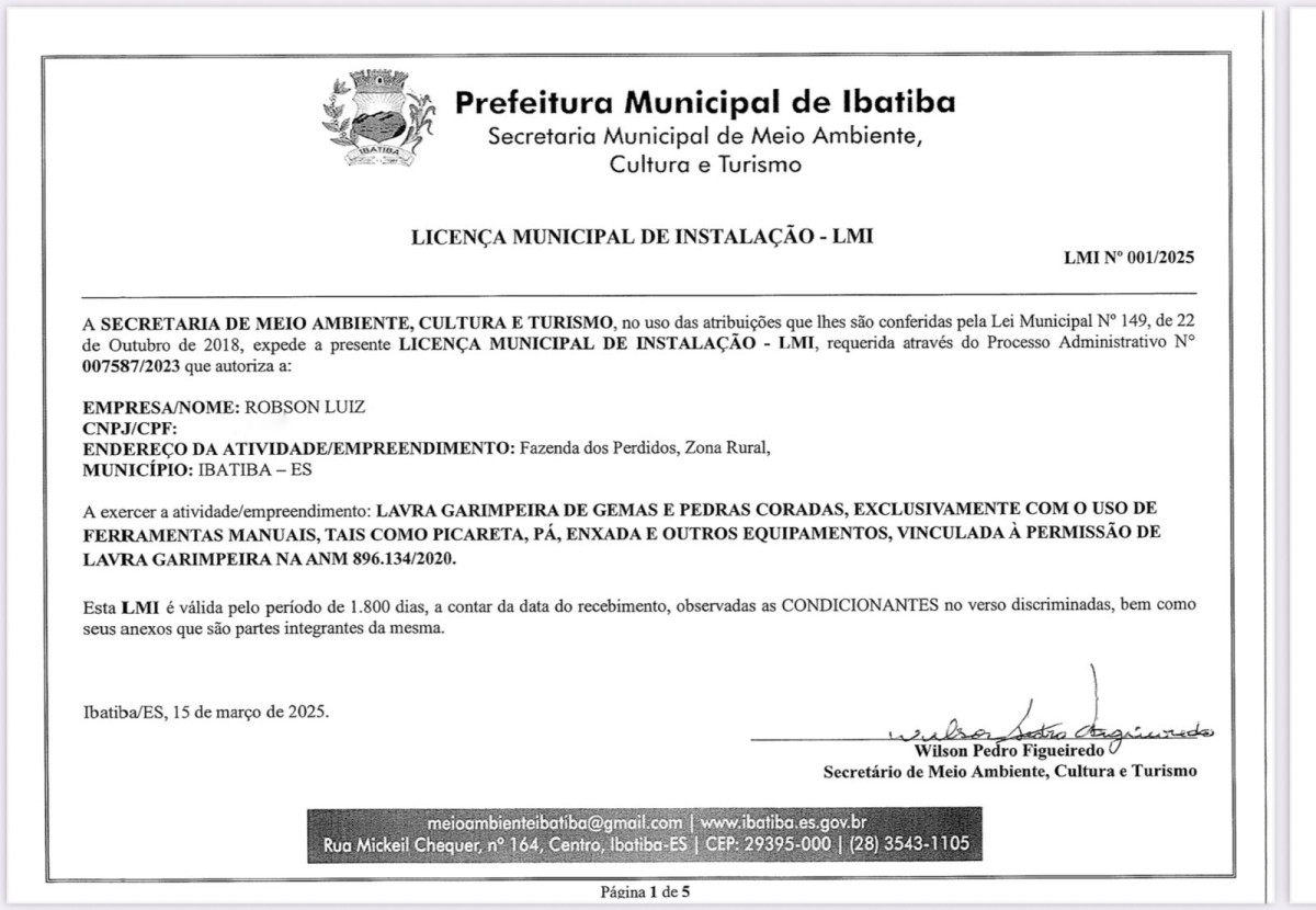 The mine has 65 hectares of soil and 100 hectares of subsoil. The mine is all ready to start exploration. Has all documentation and authorization
