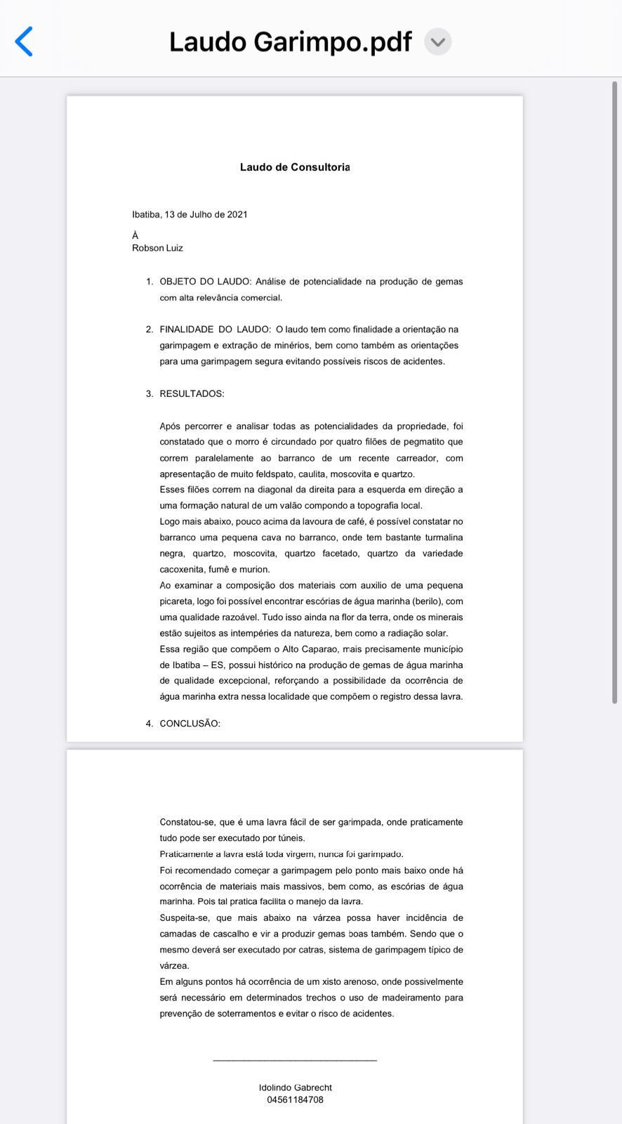 Mining company for sale with cubed reserve of 176,880 kg Forecast for 299,000 kg or more. Mining right for 828ha,with 211ha analyzed. Content 99.99